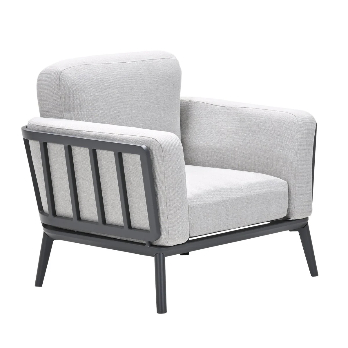 Dez loungestoel heeft een stevig aluminium frame met matte poedercoating en wordt geleverd met een dik zit- en rugkussen in de kleur valley sand. De loungestoel heeft een afmeting van 97,5 bij 76,5 cm en een hoogte van 57 cm.