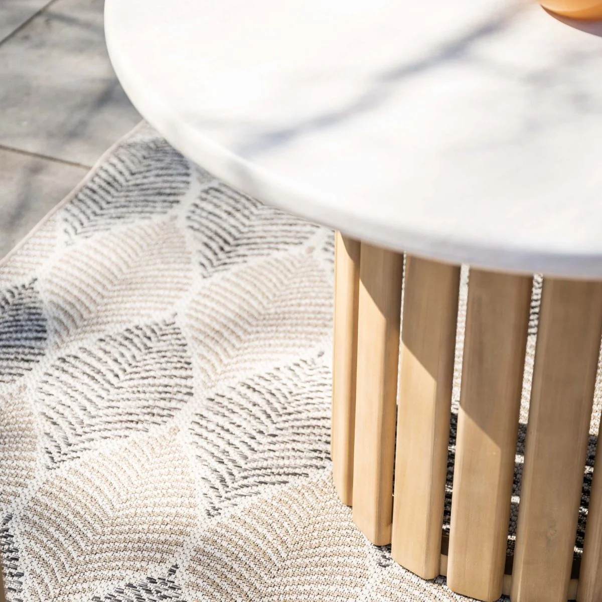 De lounge dining tafel heeft een frame dat gemaakt is van acaciahout met een fibrestone tafelblad. Om het hout in dezelfde kleur te behouden dient dit onderhouden te worden. De lounge dining tafel is 170 bij 100 cm en een hoogte van 68 cm.